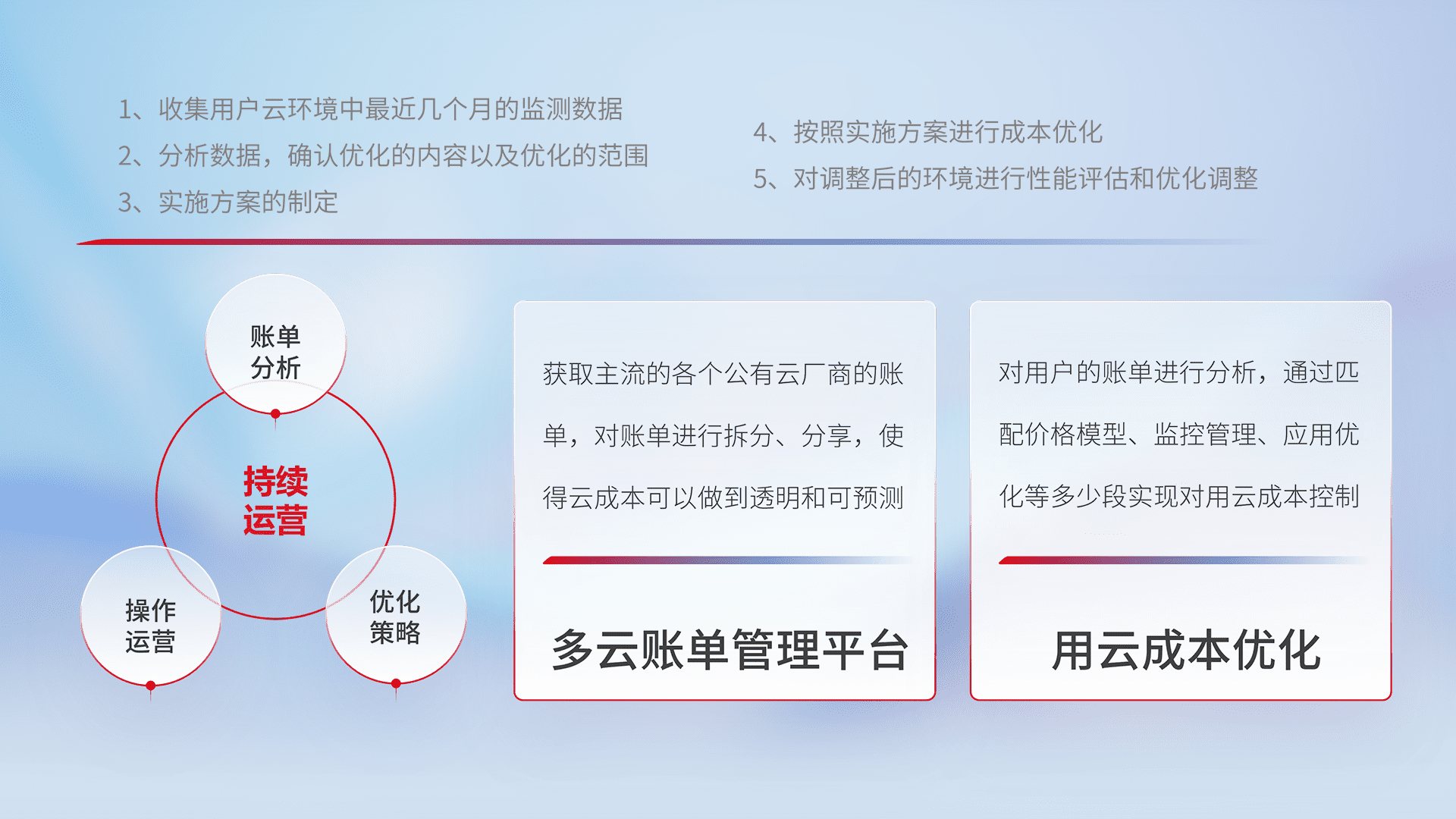 监控业务系统资源开销,,,对资源的消耗精确计量,,,实现费用的透明化管理,,,不断提升资源使用率,,调整资源购买方式,,,降低资源费用成本,,用云成本可预测、、、、用云费用可优化,,云资源配额有据可依。。